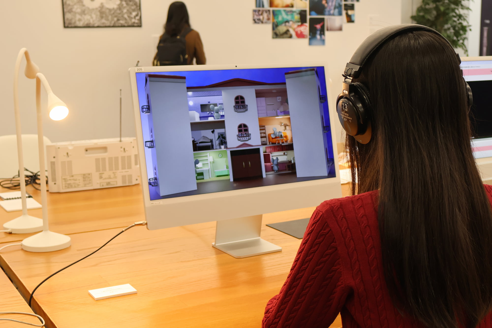 ネズミのキャラクターに人間の姿を重ね、集合住宅を舞台に人間社会の縮図を描いた作品です。本来は私的な空間である自室にも、どこか他者の視線や気配を感じてしまう現代的な感覚をテーマにしました。制作には主にBlenderを用い、3DCGでカメラワークと視線の演出にこだわりました。