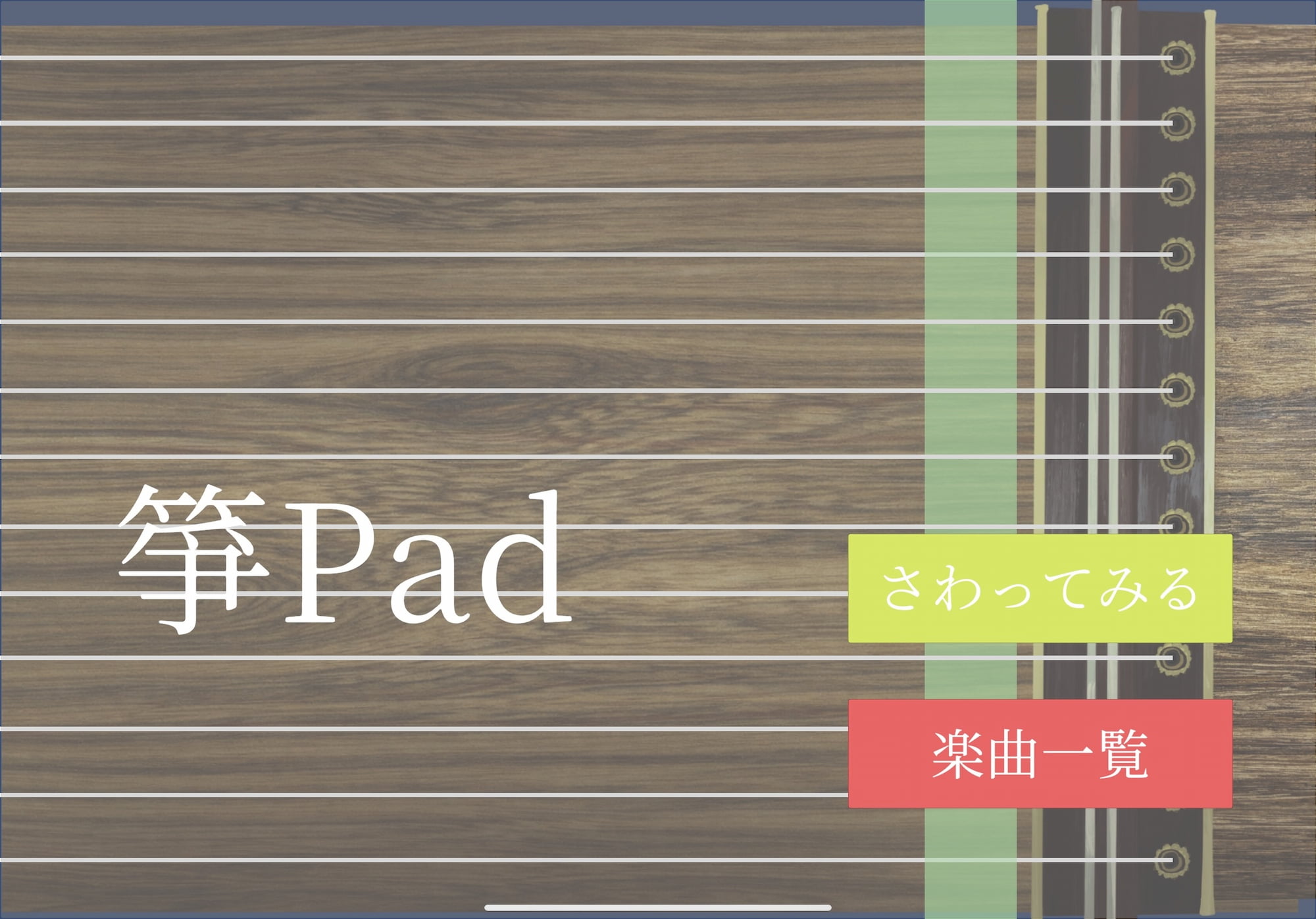本作品は、タブレットで箏を擬似体験できる音楽ゲームである。「さわってみる」モードと「演奏」モードの2つで構成されている。「さわってみる」モードでは、箏の基本的な調弦である平調子に設定された箏を自由に触ることができる。弦をタッチしたり、画面を撫でたりすることで音がなる仕組みとなっている。
