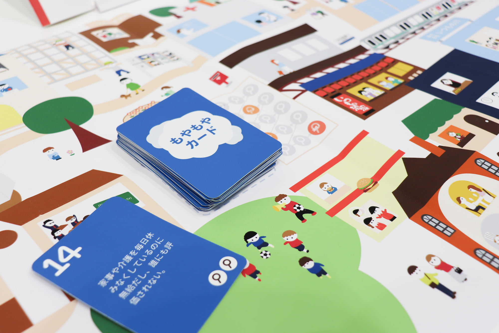 ボードゲーム『いつものまち』は、「いつものまち」に住む人々の様子を観察し、もやもやを抱えている人物を見つけるという「女性」をテーマとした協力型ゲームです。 「女性たち」のもやもやした思いや声に耳を傾けてほしいということと、それらのもやもやに対して、共感したり、自分にはよく分からないと思ったり、新しくもやもやしたり…思ったことを人に伝え、人の考えも聞いてみてほしいという思いで制作しました。 「いつも」に慣れてくると「いつも」が当たり前になります。いつもの当たり前が誰かを傷つけているかもしれない、自分や周りの人の可能性を狭めているかもしれないことに気づき、「女性」について自分事として考え直すきっかけになれば幸いです。