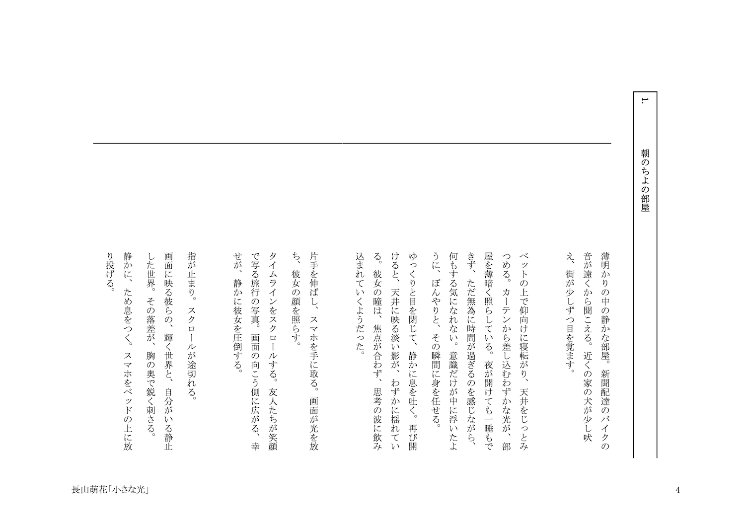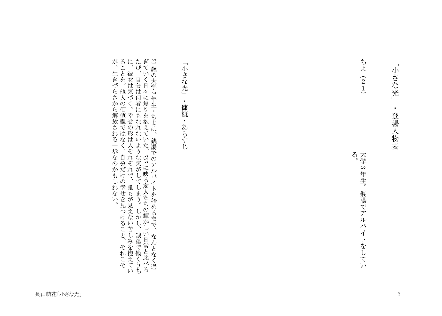 『小さな光』は、昔ながらの銭湯を舞台にした心温まる物語です。漠然と今の生活や将来に不安を抱えている、主人公・ちよは、銭湯でアルバイトを始めます。店長や常連客との交流を通じて、人とのつながりの大切さを知り、少しずつ変わっていきます。日常の中にある小さな喜びや希望をどう受け止めるかで、幸せの形は変わる。本作は、忙しい毎日の中で「自分にとっての幸せとは何か」を考えるきっかけをくれる作品です。